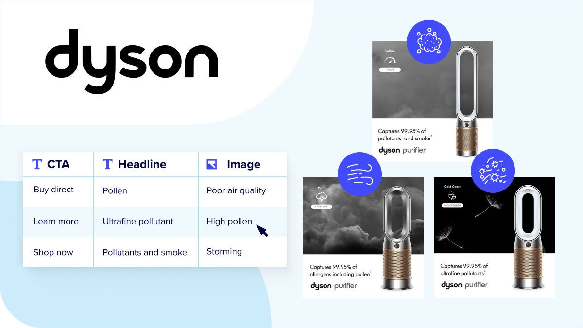 Dyson aimed to enhance personalization in social ads by syncing creative content with real-time weather conditions, while quickly increasing creative volume and expedite product ad launches.