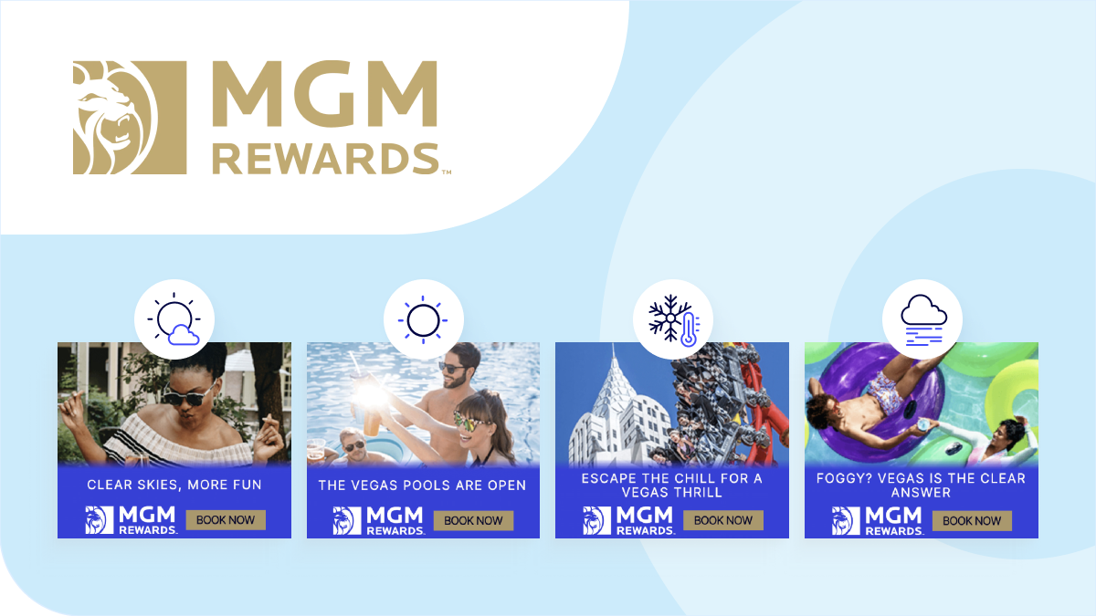 Enter Innovid's Weather-Based Targeting System, enabling MGM to craft messages perfectly aligned with local weather conditions. This personalization brought a refreshing touch to their communication strategy and empowered MGM to test new targeting tactics, effectively expanding the reach of their prospecting campaigns.
