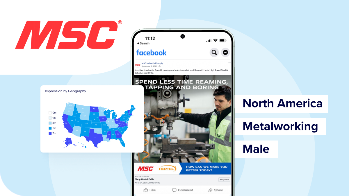 MSC Industrial, a leading metalworking distributor in North America, sought to revamp its CRM and lookalike targeting strategy for Meta, aiming to engage new users while maintaining their desired persona. Leveraging Innovid Social Ads Manager, they curated a proprietary audience using relevant job titles, interests, and demographic information through Target Sets. This new audience was tested against a CRM list of past purchasers and a 1% lookalike of the CRM list over six weeks.