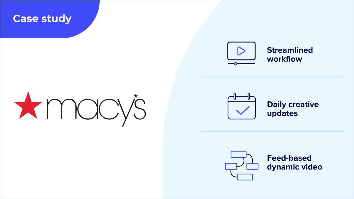 Picture the bustling aisles of Macy's during peak holidays. Customers are searching for the perfect gifts, seeking inspiration and guidance. Macy's was looking to captivate their online audience in a whole new way. The retailer sought a solution that would enable them to deliver personalized, trending product messages dynamically, so they turned to Innovid to bring their vision to life.