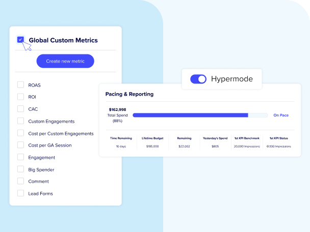 Streamline ad trafficking, new campaign builds, and ongoing ads management with Hypermode, an in-platform bulksheet powering faster time to launch and more agile optimizations.